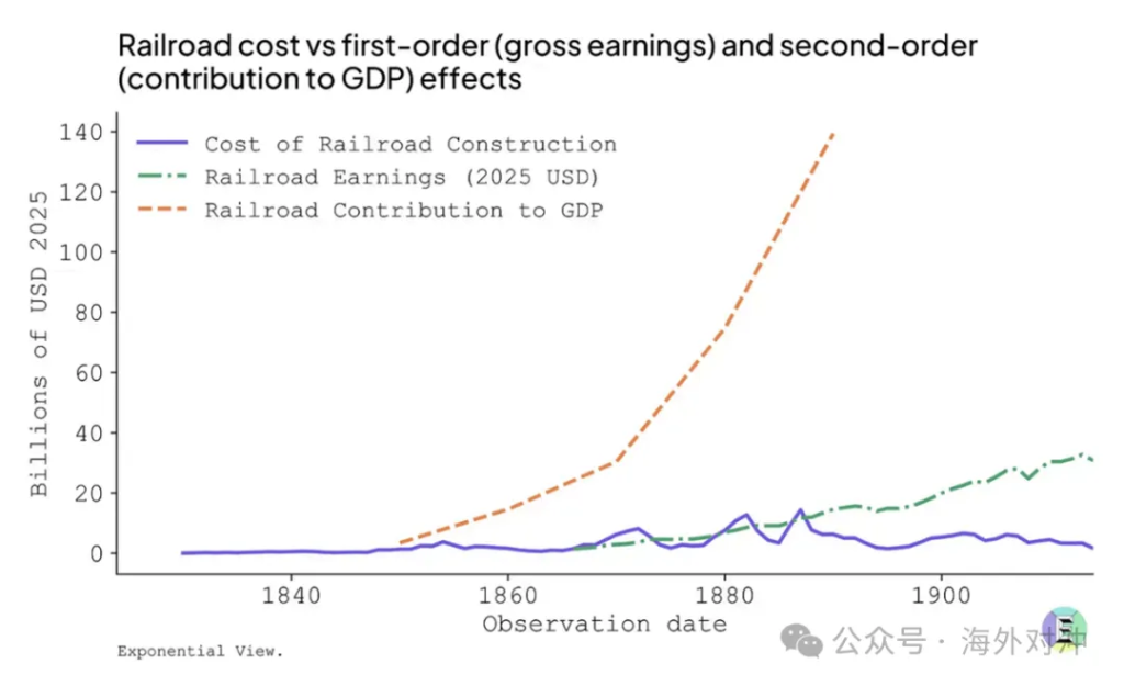 6.有关genAI 收入模型参见前注。铁路数据来自FRED,美国电信收入数据来自 OECD。