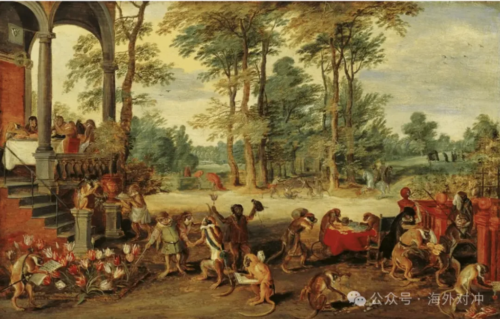 (扬·布吕赫尔二世(Jan Brueghel the Younger),《郁金香狂热的寓言》,1640年)